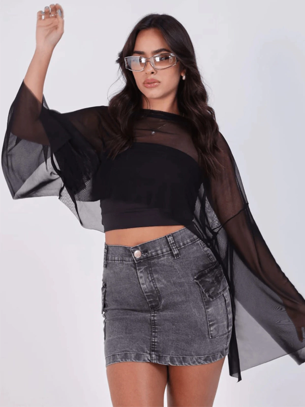 Bata tule Preta Eleve seu estilo com uma peça essencial que combina feminilidae e conforto em um só look. Confeccionado em tule super levinho perfeito para combinar com tops e tops.